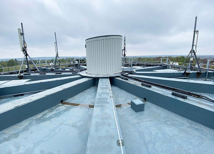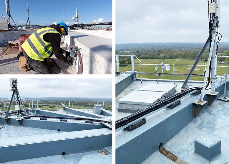 With a range of telecoms equipment located on the roof, regular access is required for maintenance purposes and therefore the safety of operatives needed to be considered in the selection of finish. Additionally, improvement to the internal concrete stair to ensure the safety of workers accessing the roof was considered. The height, size and awkward access was also a consideration for materials and workforce installing the system.